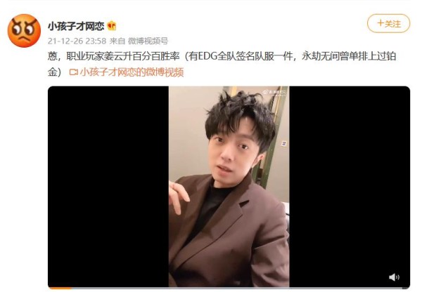姜云升有多爱电竞?收藏EDG队服,永劫单排上铂金,自称胜率100%