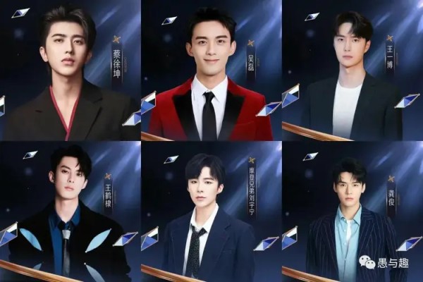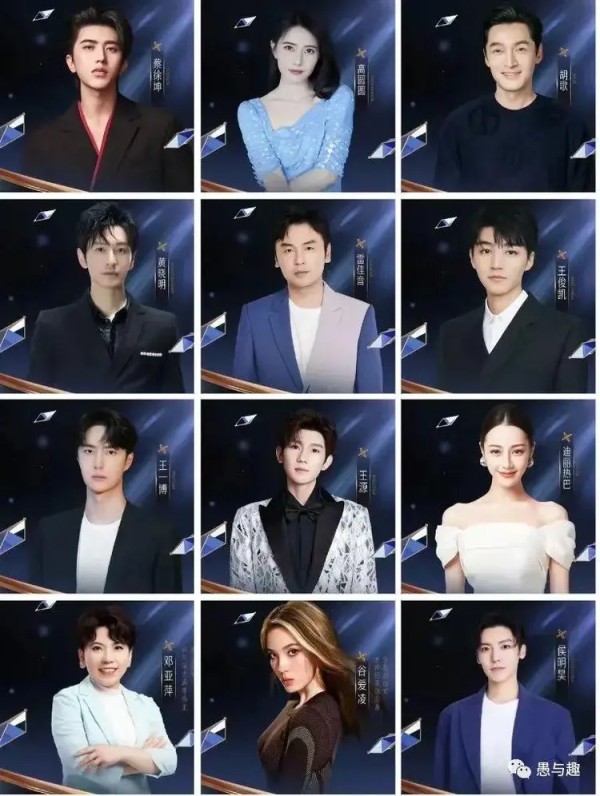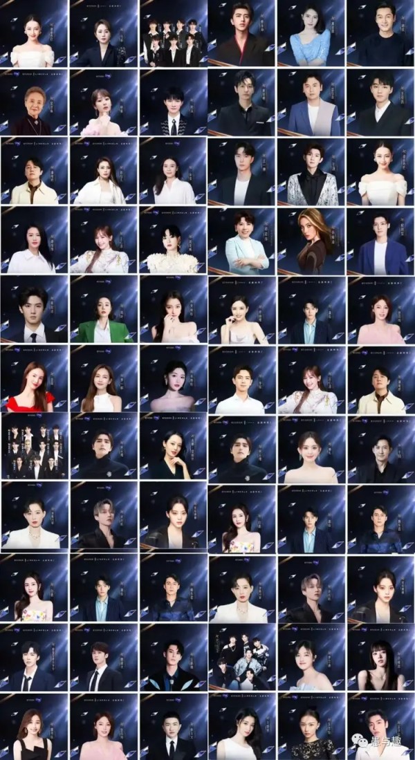 李宇春、黄晓明、胡歌、邓超、雷佳音、殷桃、佟丽娅、刘亦菲、高圆圆、迪丽热巴、杨紫、关晓彤、宋佳、吴彦姝、王俊凯、王源、易烊千玺、马丽、杨颖、刘诗诗、唐嫣、王阳、李现、童瑶、毛晓彤、吴磊、张若昀、潘粤明、张雨绮、白鹿、宋轶、高叶、金晨、