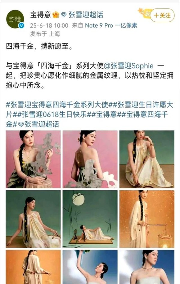 张雪迎28岁生日签约壹心娱乐,同步官宣珠宝品牌大使