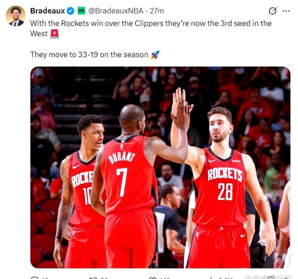 说到球场上,很多人以为只要杜兰特一到场,火箭就能稳赢。
