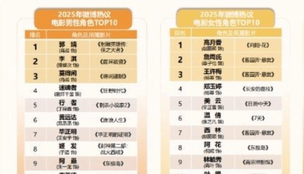 前几天看到新浪那份2025年电影白皮书,我差点笑出声。 特别是看到“年度热议电影男性角色”榜首是肖战演的郭靖,第三名还是他演的莫得闲,中间夹着个檀健次。 女星那边,赵丽颖、章子怡、杨幂包揽前三。 这榜单做得,真是把“热搜是谁家开的”写在了脸上。