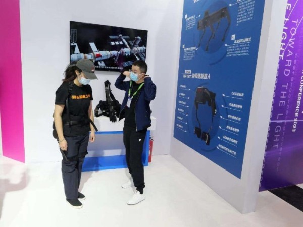 “白虹”外骨骼机器人为髋关节助力外骨骼机器人,可以实时检测人体的运动状态并据此分析得到人体的运动意图,对穿戴者进行行走中的腿部助力和搬运物资时的腰部助力,达到增强人体机能、减轻疲劳的作用。