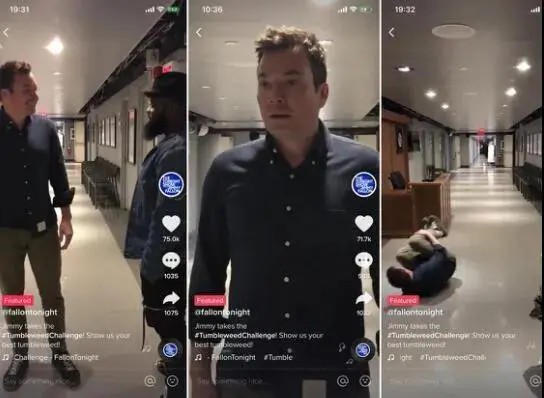 这种定期举办特定地区的活动是促进用户增长的可持续战略。在美国,TikTok与美国著名主持人吉米·法伦(Jimmy Fallon)合作,向粉丝发起“#TumbleweedChallenge”。在美国国家广播公司播出的由吉米·法伦主演的《今夜秀》中亮相,为TikTok带来了巨大的曝光。