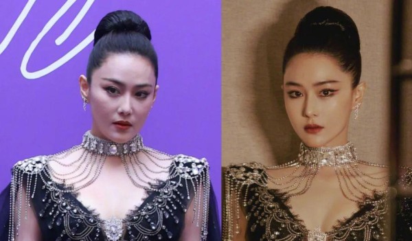 金晨这次选择了一个非常安全的妆发,但即使是保守的妆容,也掩盖不了脸部的不自然。其面部某些细节——山根与鼻梁的同宽和嘴角之上的凹痕,透露了那些背后的“科技力量”。