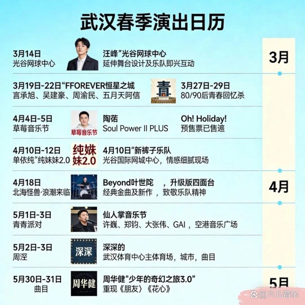 武汉演唱会2025排期表,武汉演唱会演出信息