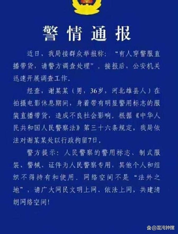 更让人大跌眼镜的,是谢孟伟火速道歉还没捂热乎,警方就直接敲了他的门,送上一份“行政拘留7天”套餐,不仅堵了网友的嘴,还让媒体也忍不住“按头安利”——新华社一出手,全网皆知,啧啧啧,这瓜真香。从童星、演员到主播、劣迹艺人,谢孟伟这波“人生海选”,未免不够励志。“嘎子”本人凉了,还带坑了家属和同行,这才叫做“带货带过界,祸从天上来”。