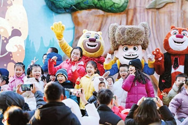 除了常规新春活动,园区更精心打造了丰富多样的闹新春互动体验,让团圆时光充满暖意与欢乐。全民元宝互动活动持续进行,游客可参与欢闹博弈赢彩头,在趣味游戏中收集元宝,沉浸式体验新春祈福的乐趣,还能凭元宝兑换惊喜好礼,让大小朋友都能收获满满快乐。国潮大巡游也将如期而至,鱼灯摇曳生姿,特色花车款款前行,熊强家族与身着国潮服饰的演员们热情互动,将传统非遗元素与新潮玩法完美融合,打造出一场移动的国风华彩画卷。不仅如此,更有精彩演艺全天候轮番上线,火龙钢花、高桩舞狮等非遗杂技震撼夺目,动感舞蹈、熊强闹新春等互动演出妙趣横生,让游客在游园过程中步步有惊喜,时时有欢乐。
