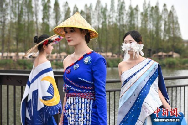 3月2日,模特展示蜡染技艺制作的民族服饰。当日,“昆明故城”文化街区上演云南非遗创新服饰秀,展现民族传统服饰与现代生活融合的独特审美。中新社记者 李嘉娴 摄