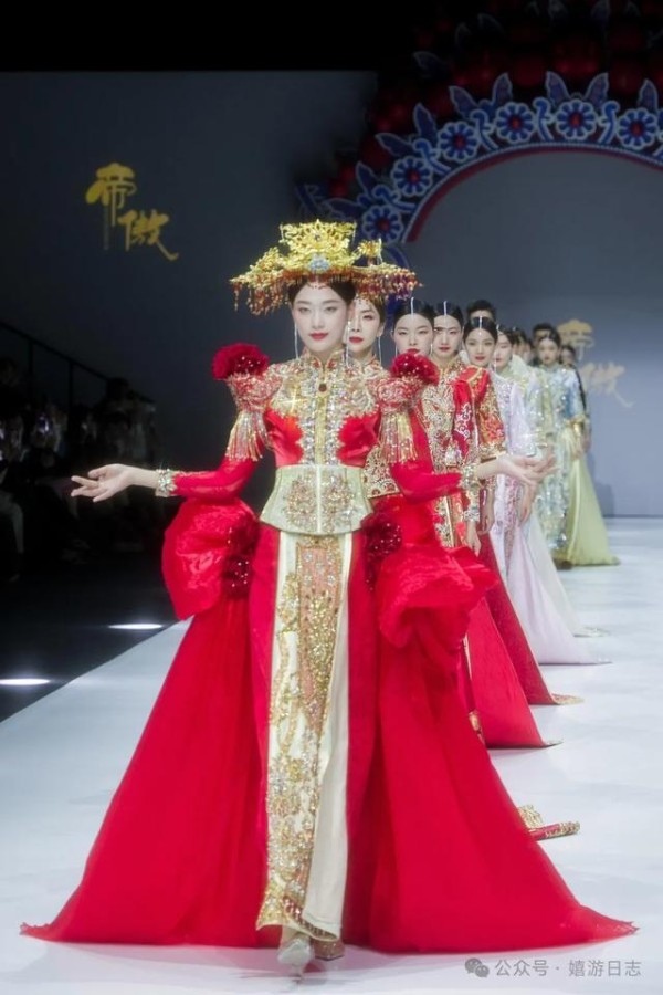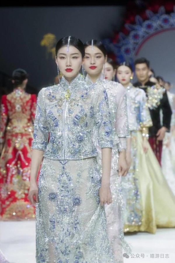 在后台,设计师们忙碌而兴奋,他们精心准备的每一件礼服都承载着他们对传统文化的热爱和对时尚的理解。他们希望通过这场走秀,能够让更多的人了解和喜爱中华传统服饰,同时也为现代时尚注入新的活力。
