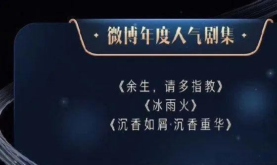 除了单人荣誉,他们还共同摘下“微博年度人气剧集”——《余生》《冰雨火》《沉香如屑》三部爆款集结,几乎包揽去年所有话题热度。