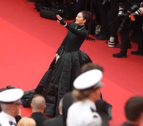 尽管造型出了一点小意外,巩俐依然是媒体镜头里的焦点明星。周围一圈的摄影机,就像追着偶像的粉丝一样,不停地按下快门。她的戛纳红毯风采,就像一幅永远引人注目的画卷,比当年的范美人还要耀眼夺目。