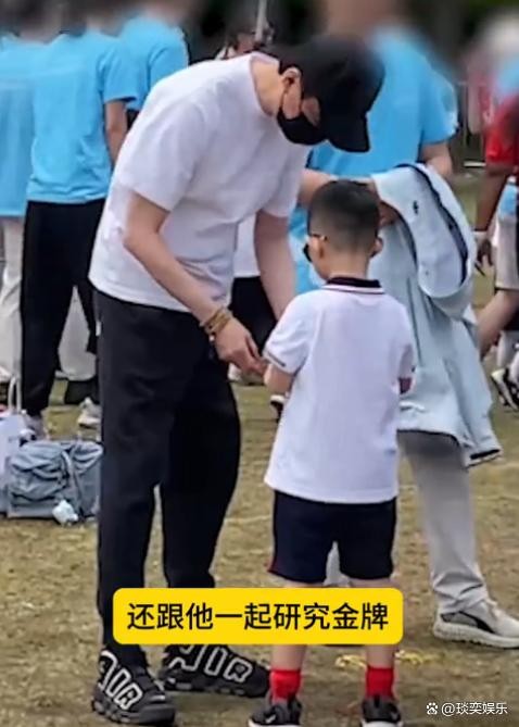 赵丽颖5岁儿子运动会拿金牌,愉快跟爸爸展示,冯绍峰反应好暖