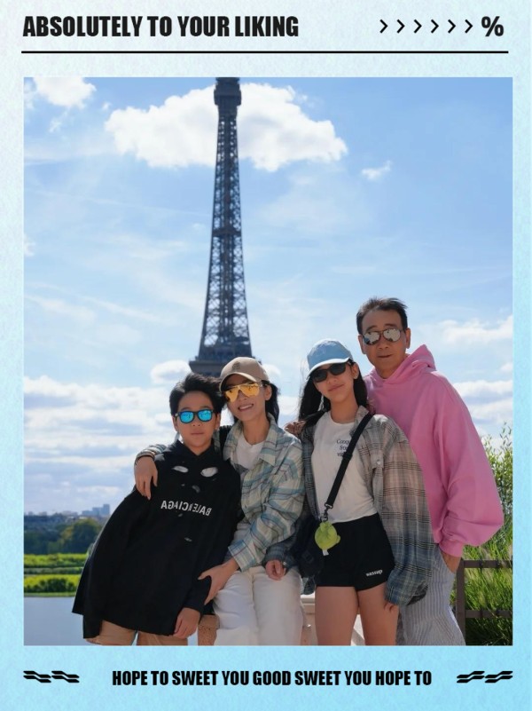 8月5日,苗圃在社交媒体上晒出了与家人的度假照片,其中一家四口在巴黎的埃菲尔铁塔和凯旋门前合影留念,背景中的两个著名景点展现了他们旅行的足迹。