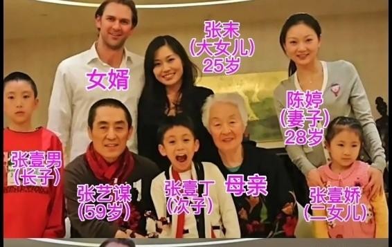张艺谋一家最新合影曝光,两个儿子像父亲,陈婷全家颜值最高