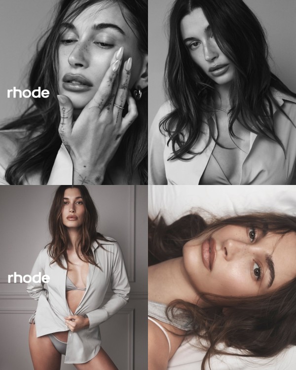 Hailey Bieber的妆容由Nina Park为Rhode广告创作