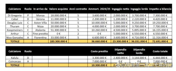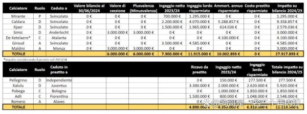 PS:至于那些买断的支出,比如弗拉泰西的买断支出,他的激活条款实际上在2024年2月份就已经被激活,也被CF等媒体算在了2023-2024赛季的支出当中。