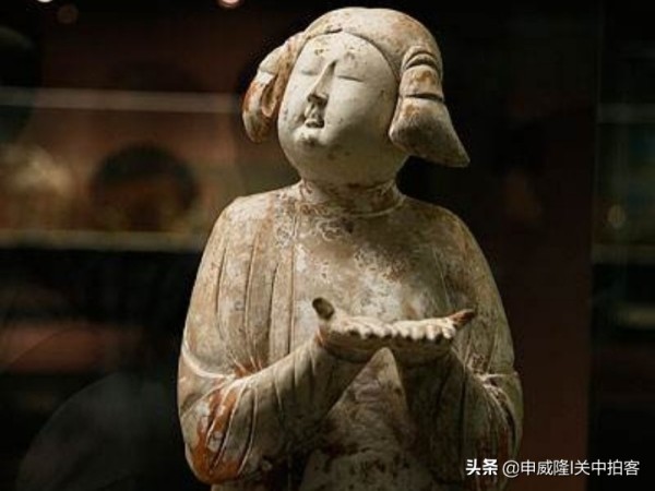 她头梳双环髻,身着圆领长袍,腰束带,足蹬靴。双手微微前伸,在胸前举起来,曾经应该捧着贵重的物品。腰略后仰,头微上扬,面带微笑,流露出大唐盛世的自信与骄傲,一个娇俏的少女形象赫然呈现在眼前。