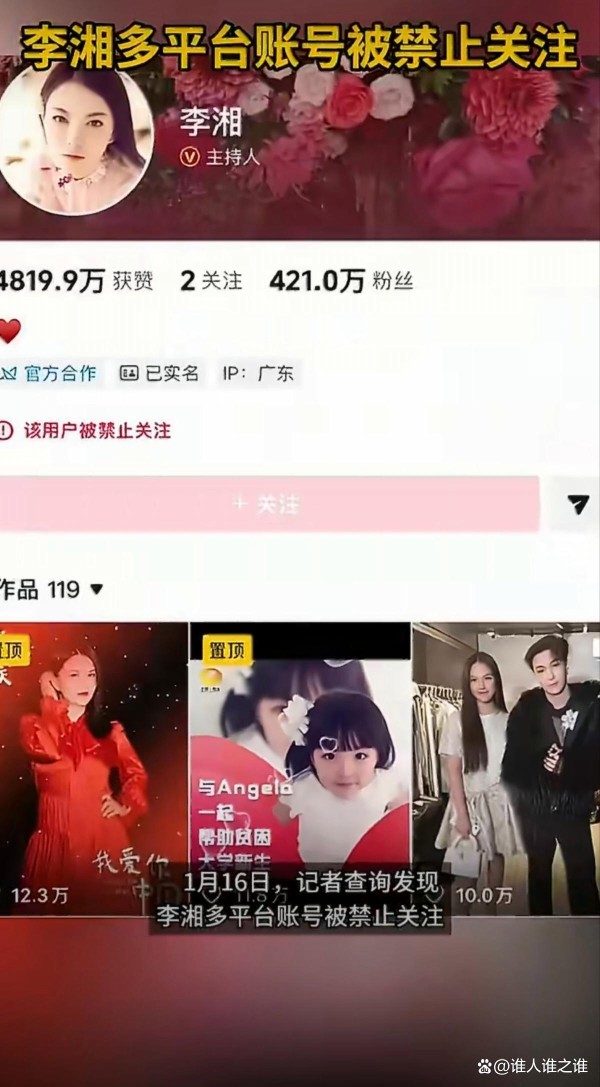 #李湘账号被禁止关注# #娱乐圈热点# #网络监管新规# #公众人物社会责任# #账号违规处罚#