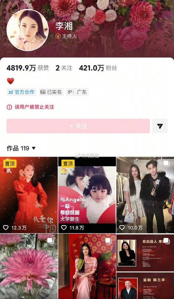 李湘多平台账号被禁止关注! 1...@星轨视野的动态