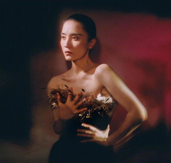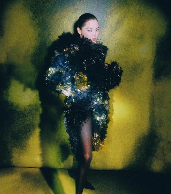 张小斐身穿一套黑色羽毛礼服,目光锐利得像个王者,气场十足。