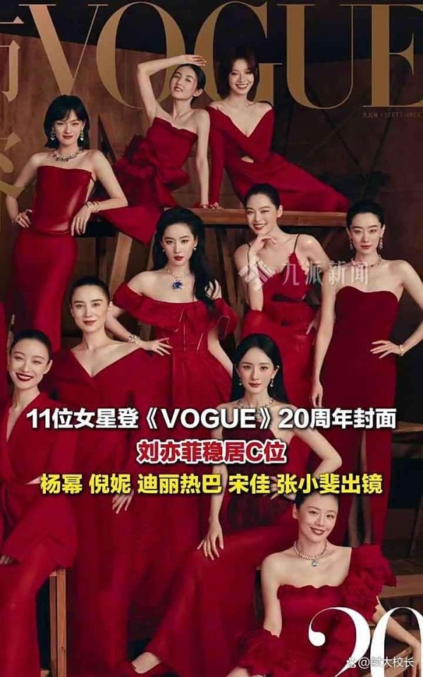 11位女星登《VOGUE》20周年封面,刘亦菲稳居C位,杨幂