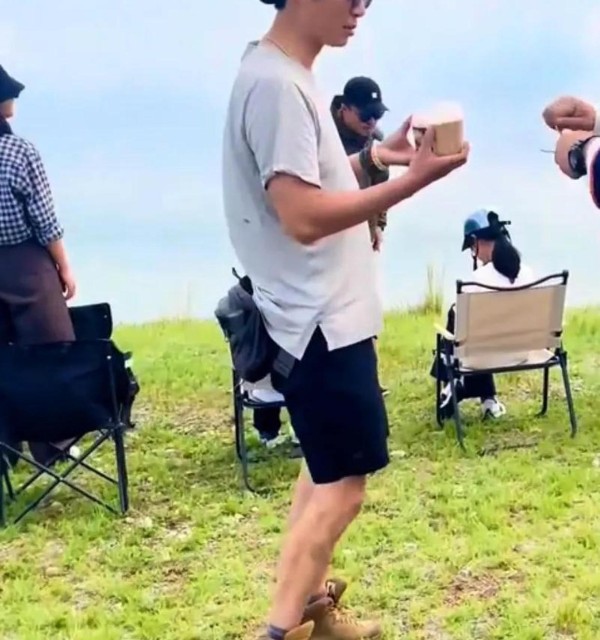 有趣的是,他们后来靠在草地上休息的时候,朱亚文也没装模作样摆什么大明星架子,反而一副“户外直男”的松弛状态,斜靠着背包,懒洋洋地望着远处。