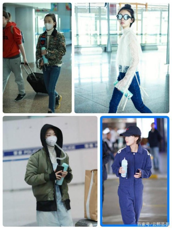 随身不离的保温杯,搭配高端时尚范,哈哈哈,感觉周冬雨和她的保温杯就是明星机场街拍的一股清流。