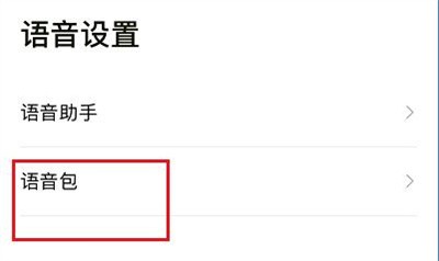 2. 在设置页面中有一个“语音设置”选项,点击进去后会看到有“语音助手”和“语音包”两个设置功能,点击“语音包”这一选项进入页面。