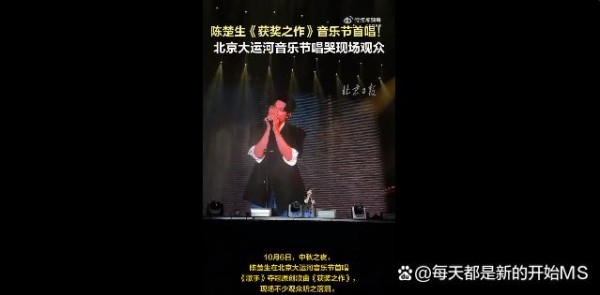 10 月 6 日中秋之夜,陈楚生在北京大运河音乐节上首唱《获奖之作》。当那句 “你要记得,你也是某人的获奖之作” 唱响,现场不少观众听之落泪。
