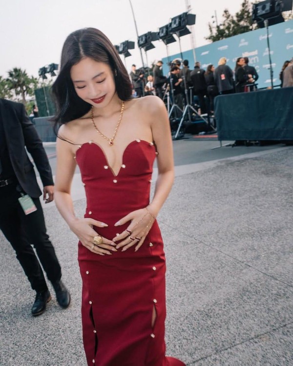 2025年3月29日,美国洛杉矶的YouTube剧院星光璀璨,2025年《Billboard Women in Music Awards》颁奖典礼上,BLACKPINK成员Jennie以一袭红色战袍惊艳亮相,最终斩获“全球力量奖”(Global Force Award)。