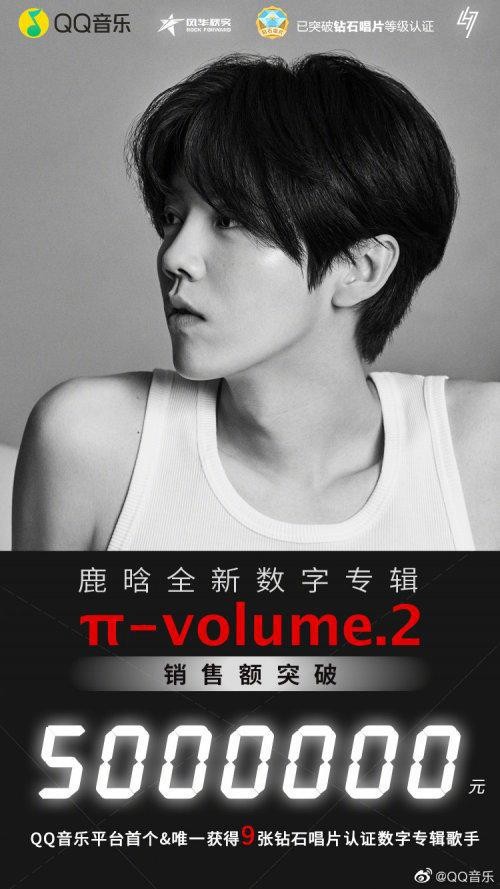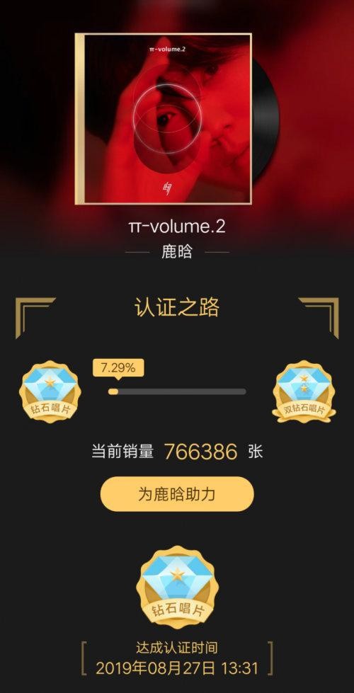 截至8月27日午间,《π-volume.2》成功认证QQ音乐钻石唱片和酷狗音乐金唱片,并成为QQ音乐平台首个&唯一获得9张钻石唱片认证数字专辑歌手。惊人的数字背后,无疑都印证着乐迷们对“鹿式音乐”的极度期待。