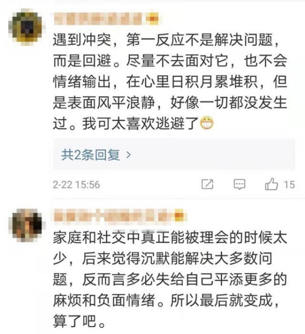 不少人还晒出自己的“症状”,比如:“内心过度自卑,对喜欢的东西不敢追求,觉得自己不配”;“不敢坦露真实的情绪,真实的自己,在跟人交往时,时常感到压抑委屈”……