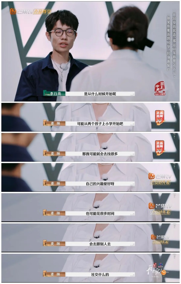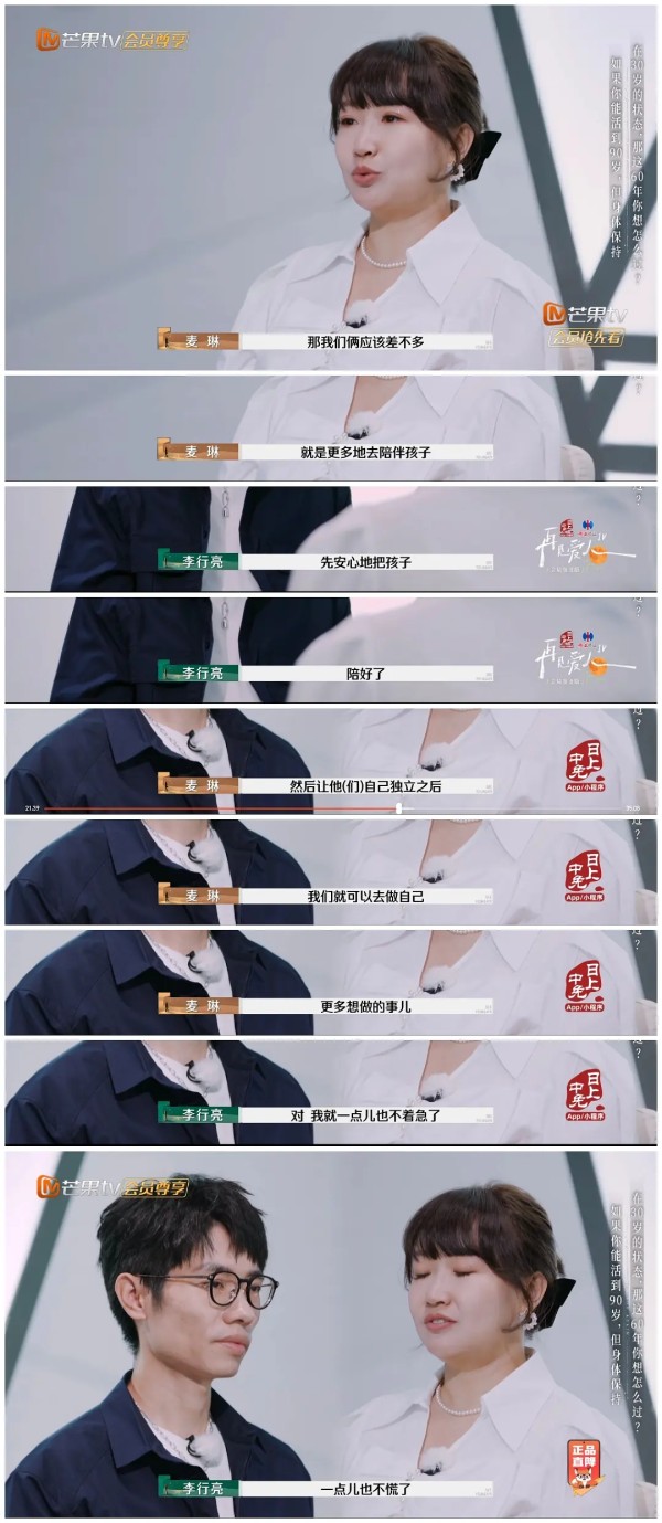 麦琳说自己很忙,过劳肥,已经没什么爱好和精神世界了。这些年非常自卑。 李行亮节目里也想麦琳给自己留点空间,找点她自己的事做。节目里包括李行亮都默认麦琳是在假忙,是她自己给自己找事做停不下来,其实家里根本就没那么需要她。 但加更有了如下对话: