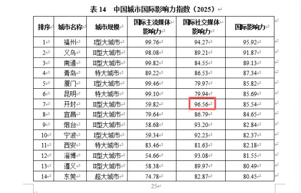 全媒体记者任佳慧报道 2025年12月28日,《中国城市国际网络形象指数报告(2025)》(以下简称《报告》)在重庆发布,开封荣膺中国城市国际影响力指数榜第七名,入选“国际影响力优秀案例”。指数显示,开封在国际社交媒体上影响力较高,领跑全国106城。
