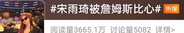 中国女星宋雨琦现身湖人现场,与詹姆斯互动引热议