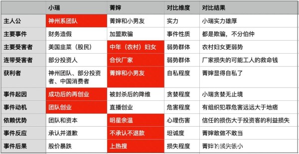 咱们用竞品分析的对比方式看看小瑞和菁婶谁更可恶: