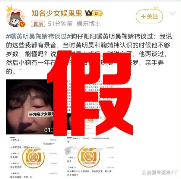 黄明昊鞠婧祎绯闻热搜榜首,官方火速辟谣