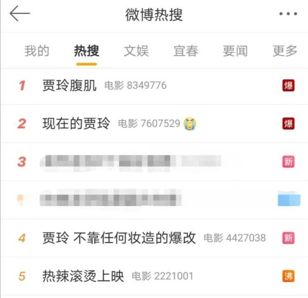 今日,瘦身100斤的贾玲,首度曝光。当天上午9点,贾玲发布电影《热辣滚烫》单人海报,海报中的贾玲,竟然瘦出了清晰的下颌线,惊得网友直呼认不出来了,有网友表示,“新年愿望:瘦成贾玲!”截至记者发稿,微博热搜榜前5中,有4个话题跟贾玲相关。