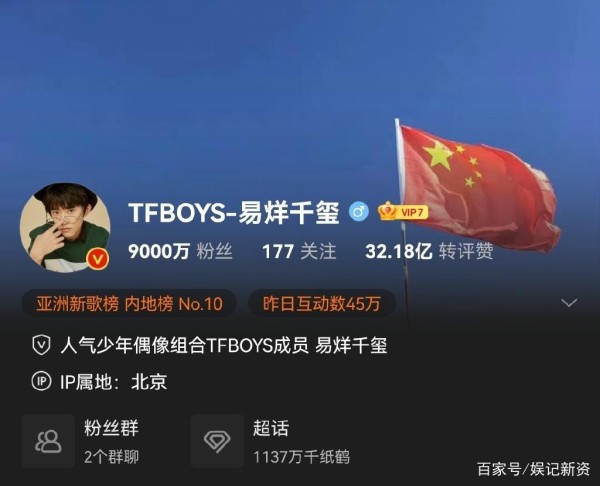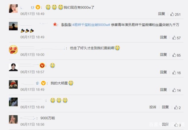 #易烊千玺微博粉丝数量破九千万#