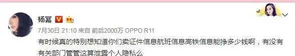 无独有偶,前段时间大幂幂也在微博上面控诉自己的行踪被曝光,也呼吁大家管管个人隐私被泄露的问题。