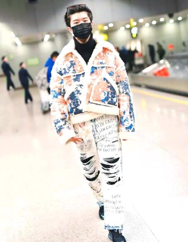搭配上别具一格的印花羊羔毛上衣,范丞丞的整体造型显得分外引人注目。浅色破洞裤上的小破洞巧妙地增添了时尚气息,然而,如此前卫的裤子并非人人都能驾驭。它不仅考验着穿着者的身材与气质,更对整体的时尚搭配功底提出了严苛的挑战。