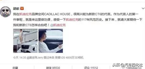 不过,从胡歌微博发布代言消息后,不到四个小时,转发95530万条,评论11512条,点赞109833万条。其影响力可见一斑,千万粉丝立即彰显巨大流量价值。可以说,这种深度捆绑不仅打通高效率的流量变现通路,也展示了全新一代凯迪拉克CT6强大的产品力优势。