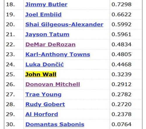 所以吧,结论其实很明显,沃尔肯定不是名人堂级别的球员,在BBR的预测里,沃尔入选名人堂的概率仅为32.4%,不及东契奇、唐斯、德罗赞等人。