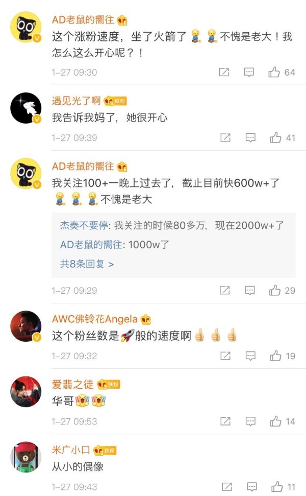 在他这些短视频下面,抢热评的都是明星。这就是差距。这些人里,当然包括“粉头”贾玲了。收获了爱豆翻牌快乐,观观流下了羡慕的泪水。