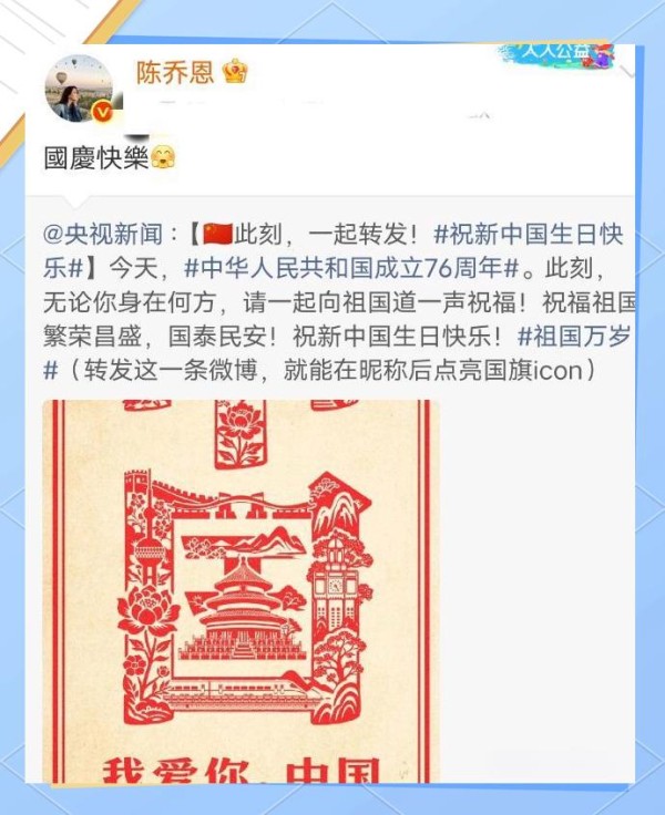 除了侯佩岑,陈乔恩、吴奇隆等众多艺人亦纷纷发声,向祖国献上最真挚的祝福。这些举动虽小,却意义非凡。身为公众人物,他们在这些原则性问题上展现出了坚定的立场与鲜明的态度。