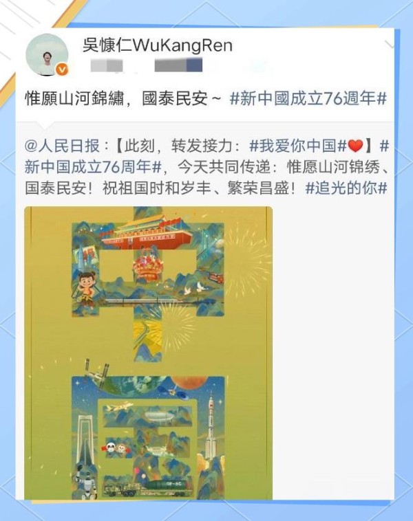 他新近完成的作品即将与公众见面,引发了广泛期待。同时,备受瞩目的网络红人“馆长”也在社交媒体上向祖国致以生日祝福。这位曾经历过起伏的网络名人,如今正凭借其广泛的影响力,引导网友们树立正确的认知。他引领网友们深入了解内地现代化的建设成就,真实展现当前的发展状况,从而坚定了更多人的爱国情怀。