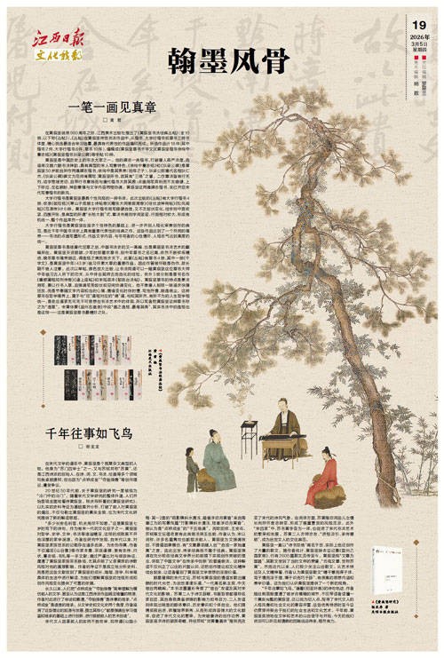 “七”“衣”“夜”……当一个六岁的小女孩认真地识认《青衣江题名卷》上的大字时,千年翰墨焕发出新鲜的气味,仿佛让人看到黄庭坚正款款而来。穿透纸背的不止此间的雅,还有黄庭坚的风骨。一路湖海漂泊,仕途坎坷,未曾磨去文心。那一笔笔沉稳的字迹,是他“穷且益坚,不坠青云之志”的坚守,是与当代人的精神对话,亦是江右文人“文章节义”的最好诠释。江水东流,洗去了岁月的尘埃,却洗不去黄庭坚刻在江右大地上的印记。