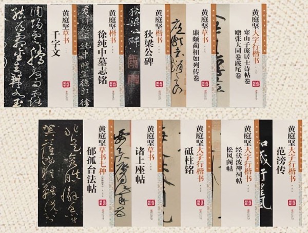 在黄庭坚诞辰980周年之际,江西美术出版社推出了《黄庭坚书法经典丛帖》(全10册,以下称《丛帖》)。《丛帖》在黄庭坚传世书法作品中,从楷书、大字行楷书和草书三种书体里,精心挑选最适合学习临摹、最具有代表性的作品编印而成。所选作品计18件(其中楷书2件、大字行楷书6件、草书10件),编辑成《黄庭坚草书千字文》《黄庭坚楷书徐纯中墓志铭》《黄庭坚楷书狄梁公碑》等字帖10种。