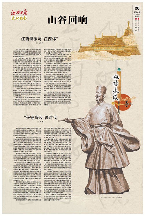 今天,打造“新江西诗派”的申议已经响亮地喊出。“新江西诗派”沿袭旧称而特别冠以“新”字,是在凝练时代性课题、地方性特色的基础上,重点考虑与宋代江西诗派的渊源与衔接,参考后来广义江西诗派的有关经验。而以古今通贯的眼光研究江西诗派的千年发展,是为打造“新江西诗派”,推进有地方活力的江西文化发展,提供坚实的历史基础。