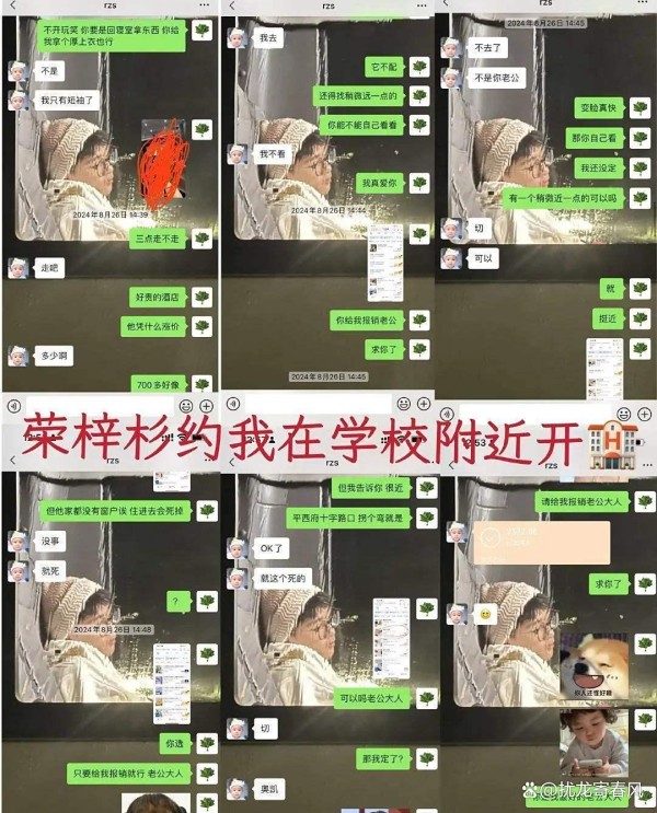 说实话,翻着那些对话截图,我的确感到惊讶。两人通过朋友搭线认识,最终在2024年8月确定了恋爱关系。最抓马的细节出现在荣梓杉客串完综艺节目《花少》之后——节目里,陈好曾鼓励他说,大学正是谈恋爱的好时机。这还真是话音未落,人家立刻行动了。表白不到一周,荣梓杉就迫不及待地邀约女方开房。这时候,场景的“温度”却突然冷了下来。李禹熹选了一个七百多的酒店,荣梓杉嫌贵。又找了一个六百多的,他依然觉得不值。最后硬是退成了372元的无窗“经济型标准间”。即便如此,转账的过程还有点儿拖延和纠缠,就像迟迟不愿掏出一滴血一样。
